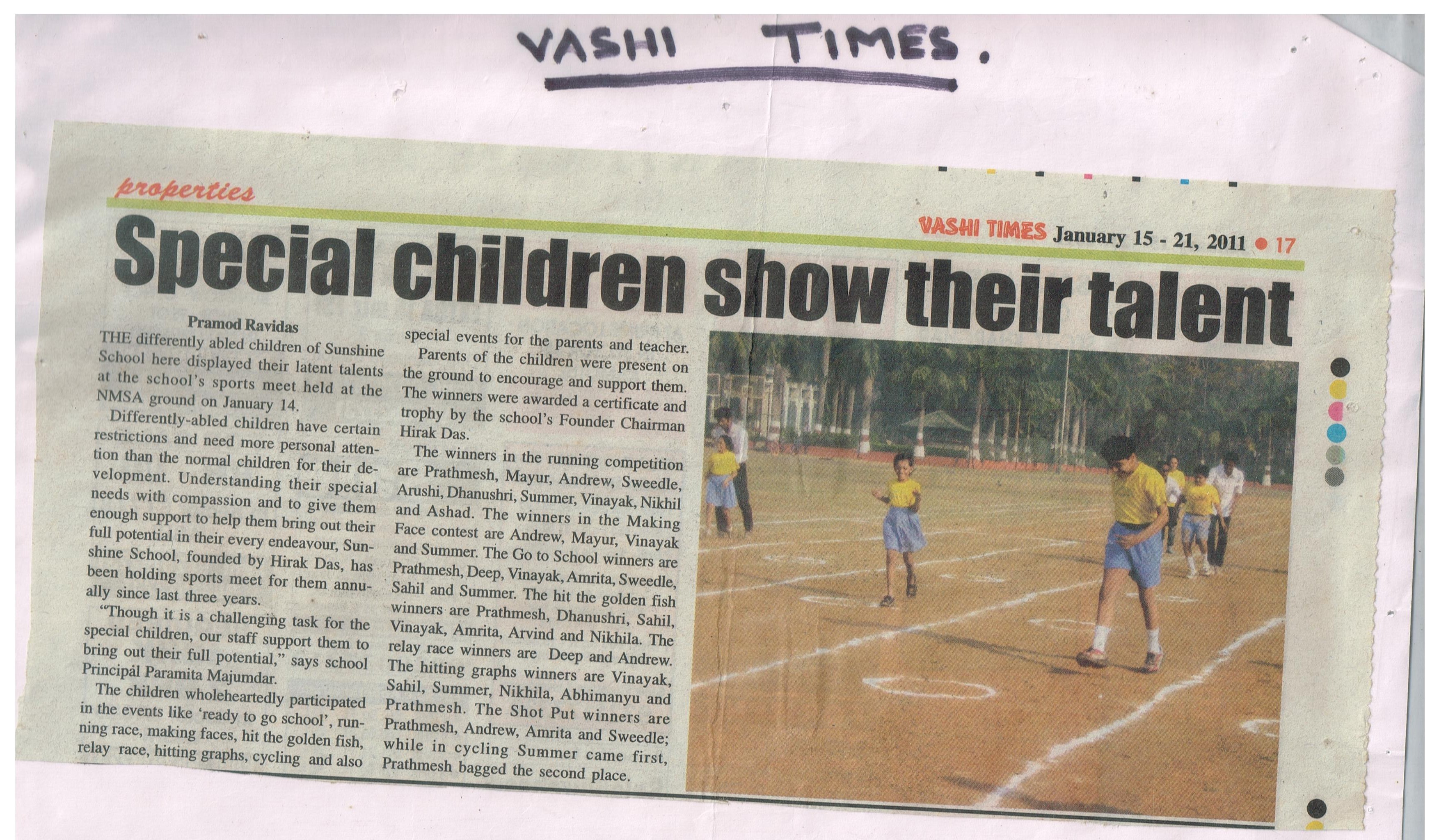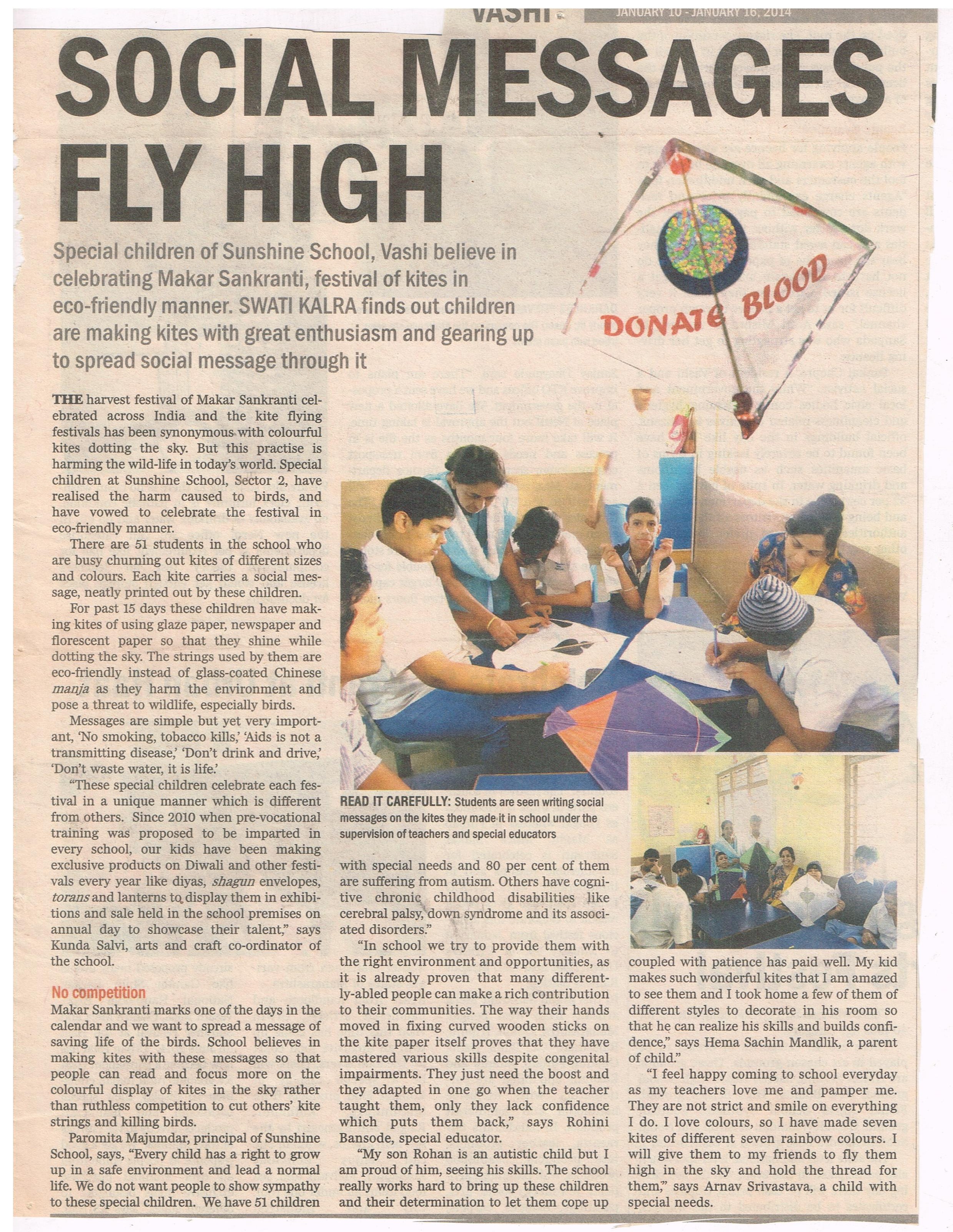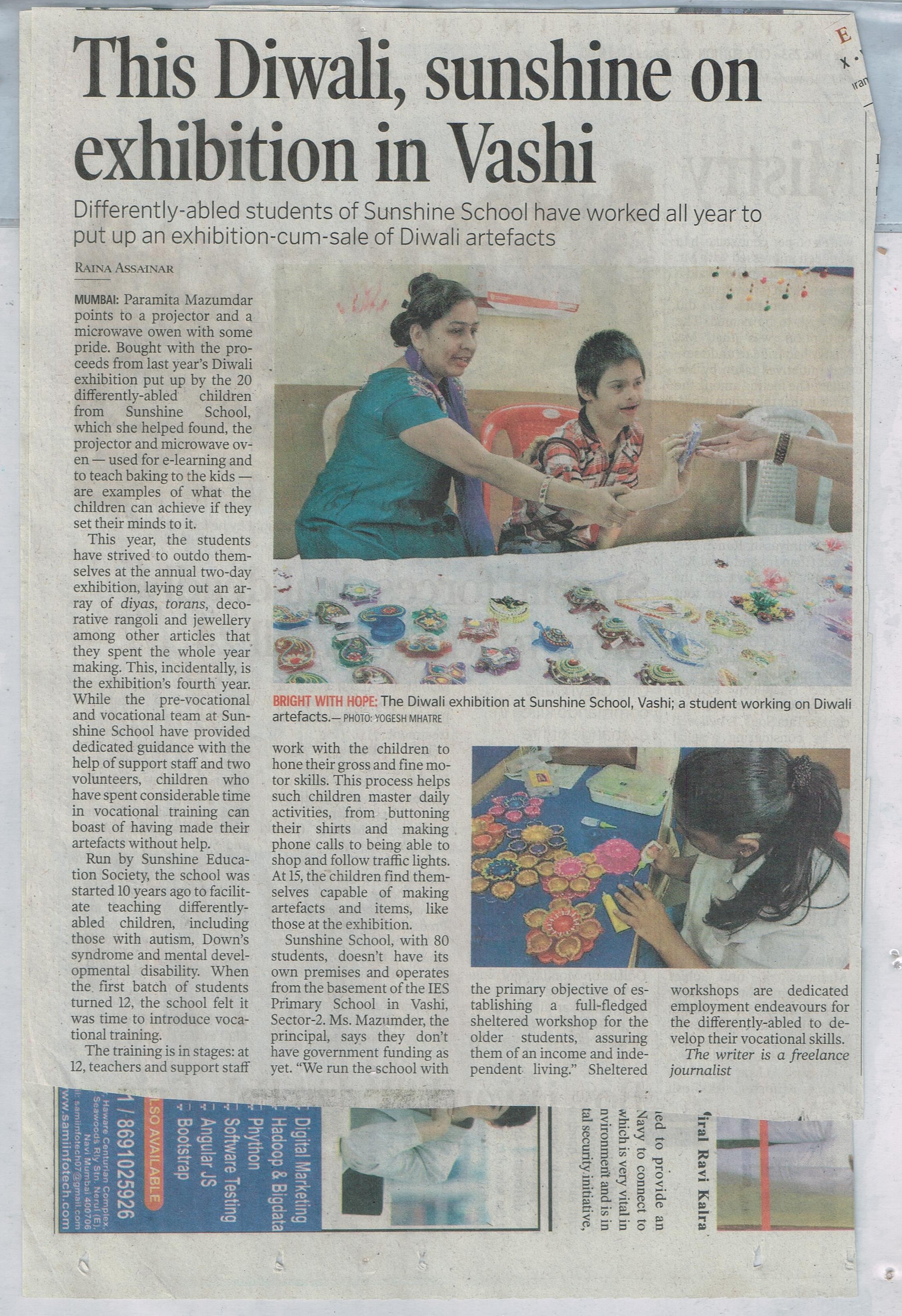 SUNSHINE SCHOOL WORKSHOP RH-4, M-9, SECTOR -6, VASHI, NAVI MUMBAI. 400703 Contact: 022-2782 7346